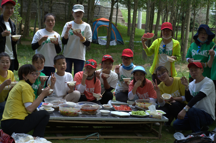 到達(dá)公園后,大家開始支鍋,洗菜的洗菜、烹飪的烹飪、玩兒的玩兒……好不熱鬧。不多久,一頓饕餮大宴就上桌了。在大快朵頤之后大家開始做活動(dòng),拾垃圾、踢毽子、吹氣球等,一系列既環(huán)保又能體現(xiàn)團(tuán)隊(duì)協(xié)作比賽活動(dòng)拉近了所有參與者的距離,最后還為所有參與者贈(zèng)送了小禮品。大家在歡歌笑語(yǔ)中享受到了一頓豐盛的“綠色大餐”。