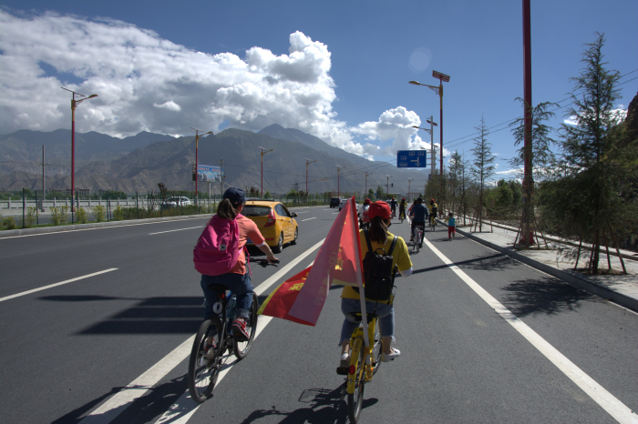在活動(dòng)開始前,工作人員對(duì)騎行人員的裝備,紀(jì)律以及騎行過程中的注意事項(xiàng)等做了嚴(yán)格的要求。騎行路線從拉薩大藥房出發(fā),沿著德吉路、太陽(yáng)島東橋、318國(guó)道,最后達(dá)到普巴林公園。